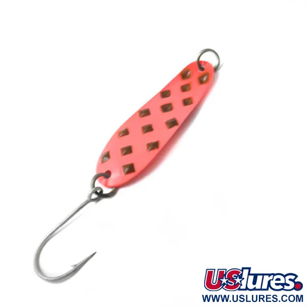Маючи довжину 6,5 см, блешня Alpena Diamond вирізняється характерним рельєфним тисненням, що зумовило її назву та призначення. При вазі 6,5 г ця приманка від Luhr Jensen є спеціалізованим інструментом для тролінгу, розробленим для глибоководної ловлі. Колірна гама Orange / Black поєднує яскраву основу лососевого відтінку з контрастним чорним ромбовидним тисненням на опуклому боці, тоді як увігнута сторона залишається однотонною помаранчевою. Цей екземпляр, представлений під артикулом 0438, уособлює якість американського виробництва в історії бренду. Оснащення міцним одинарним гачком через заводне кільце підкреслює увагу Luhr Jensen до надійної фурнітури для серйозної риболовлі. Покриття всього металевого корпусу збереглося надзвичайно добре, воно має чіткий і чистий вигляд, що відповідає оцінці стану 5/5.