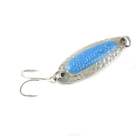 Ця модель вагою 14 г (1/2 унції) створена для далеких закидань, необхідних при прибережному вітрі або на широких річкових плесах. Масивне латунне тіло Blue Fox Pixee має блискуче нікелеве покриття та доповнене яскраво-синьою вставкою, що імітує ікринку лосося, вмонтованою в його карбовану поверхню. При довжині 5,5 см (2 1/4 дюйма) та артикулі 1740, ця приманка американського виробництва є класичним вибором для лову сталеголового лосося, лосося та щуки. Оцінка стану 4 з 5 свідчить про добре збережений екземпляр, який готовий до роботи на воді або для почесного місця в колекції. Конструкція передбачає перекидання та хаотичні коливання під час облову глибоких ям або при рівномірній проводці в морському прибої. Міцний трійник надійно закріплений на задньому заводному кільці, що гарантує надійне утримання, коли нарешті клюне трофейна риба.