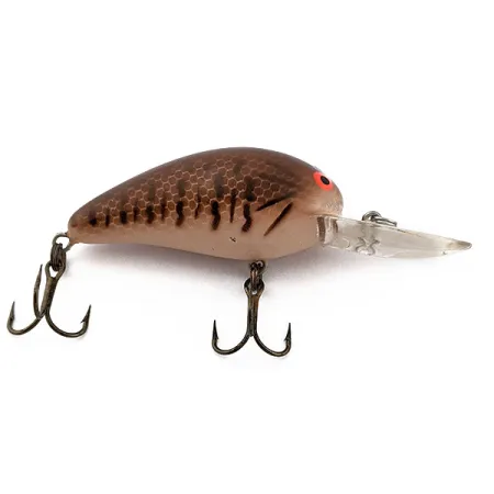 Класичний візерунок луски у вигляді стільників доповнює забарвлення під коричневого рака на цьому 5-сантиметровому кренку, що має темні вертикальні смуги на боках. Створена для роботи на глибинах 1,8–2,4 м, прозора заглиблювальна лопать забезпечує ефективну гру приманки як під час лову в закид, так і тролінгом на різному рельєфі. Цей конкретний екземпляр (артикул 18132) зберігся у відмінному стані 5/5: чистий корпус та виразні червоні очі, що слугують чіткою точкою прицілювання для хижака. При вазі 11 г плаваючий воблер оснащений внутрішньою шумовою камерою, яка допомагає провокувати на атаку щуку та судака. Оригінальна фурнітура складається з двох трійників (на черевці та хвості) у чудовому стані.