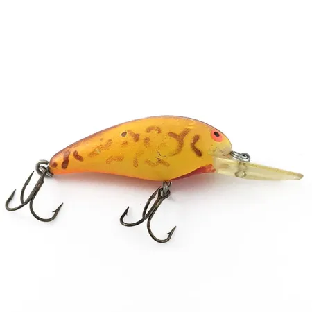 При довжині 7 см (2 3/4 дюйми) цей кренк має класичне забарвлення «коричневий тигр» на яскравому жовто-помаранчевому тілі. Серія Model A від Bomber є базовою для багатьох рибалок, а саме ця модель 7A (код товару 21065) належить до глибоководного сегмента лінійки. Цей плаваючий воблер розрахований на заглиблення 2,4–3,0 м (8–10 футів), що робить його ефективним інструментом для полювання на судака та щуку як у закид, так і тролінгом. При вазі 14 г (1/2 унції) він поєднує компактний профіль із достатньою масою для далекого закиду. Якщо придивитися до покриття, коричневі тигрові смуги контрастують з оранжево-жовтими боками, а червона пляма на черевці та виразні червоні очі додають акцентів. Стан фурнітури та поверхні корпусу оцінюється на 3 з 5, що підкреслює характер приманки, яка вже встигла чимало побувати у воді. Прозора лопатка надійно тримається, а внутрішнє брязкальце забезпечує шумну гру в товщі води.