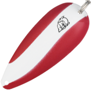 Ця масивна металева приманка вагою 21 г (3/4 унції) втілює засади структурної ловлі, які свого часу впровадив її творець. Корпус завдовжки 9 см (3 1/2 дюйми) має яскраво-рожеве покриття (у цьому випадку воно виглядає як насичений темно-червоний колір) з великими чорними плямами, розкиданими по вигнутій поверхні. Ця модель за каталогом 22598 вирізняється особливою формою, розробленою для точного утримання робочої глибини. Бак Перрі створював «Спунплаг» не просто як блешню, а як інструмент для вивчення донного рельєфу, і цей виготовлений у США примірник повністю зберіг свою конструктивну цілісність. Оснащення складається з трійника на черевці та хвостового гачка; обидва мають незначні сліди часу, характерні для доглянутої вінтажної речі. Стан оцінюється на 4 з 5: на краях є невеликі відколи фарби та поверхневі мітки, що свідчать про її використання на водоймах. Міцна металева конструкція має фірмовий штампований вигин та з’єднання на заводних кільцях, властиві американським снастям середини минулого століття.