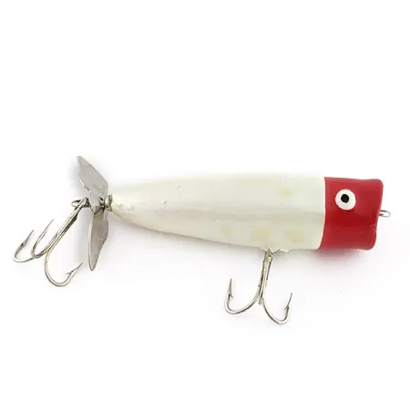 Цей екземпляр вирізняється класичним забарвленням «червона голова» (red head): яскраво-червона передня частина поєднується з перламутрово-білим гумовим тілом. При вазі 14 г (1/2 унції) та довжині 7 см (2 3/4 дюйма), ця поверхнева приманка від компанії Burke Flexo-Products представляє унікальну епоху гумових приманок з Мічигану, що випускалися між 1950 та 1993 роками. М’яка конструкція моделі 23204 була розроблена для поверхневого поппінгу; вона має чашоподібну виїмку в носовій частині та характерний металевий пропелер ззаду для створення збурень на воді. Один трійник закріплений на черевці, а другий розташований слідом за хвостовим пропелером. Мальовані очі добре збереглися, а загальний стан 4/5 свідчить про те, що гума залишається еластичною, з лише незначними поверхневими слідами, характерними для її віку. Компанія Burke була відома своїми розробками з «живою грою», роблячи ставку на тактильні властивості матеріалу, що суттєво відрізнялися від твердого пластику тогочасних виробників.