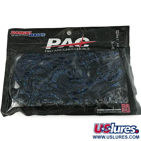Глибокий синій пігмент із яскравими синіми мікробліскітками формує зовнішній вигляд цих 18-сантиметрових (7 дюймів) креатур. Модель Monster Miki (артикул 7096) має продуману конструкцію, що складається з ребристого тіла, бокових відростків та подвійного стрічкового хвоста. Хоча Damiki — це відомий світовий бренд, саме ця серія Pro Angler's Choice (PAC) була виготовлена в США, що припало на період локалізованого виробництва для американського ринку. На пакуванні відображено універсальність моделі та запропоновано варіанти оснащення: техаська оснастка, дроп-шот або використання як об’ємного трейлера для джигів зі спідницею. Усі 8 приманок в упаковці нові, що гарантує збереження оригінальної текстури та цілісності м’якого силікону. Ребриста поверхня відростків створює виразний тактильний контраст порівняно з традиційними гладкими імітаціями ящірок чи раків.