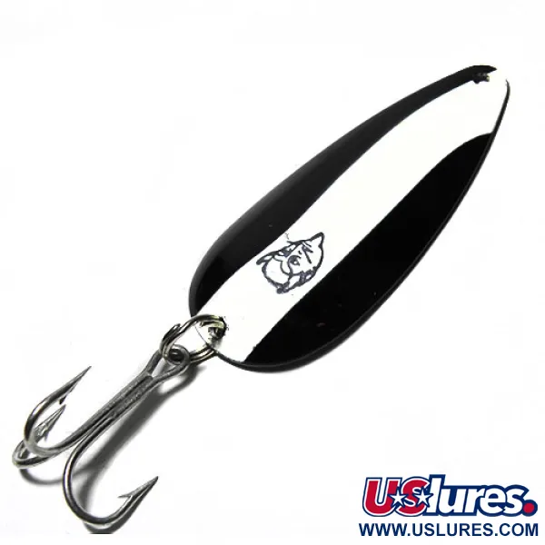 При вазі в чималі 3/4 унції (21 г), дана модель Dardevle Dardevlet 0265 втілює класичну американську якість виготовлення на потужностях Eppinger у Дірборні, штат Мічиган. Лицьова сторона має контрастне чорно-біле вертикальне забарвлення з відомим логотипом голови диявола по центру білої смуги. На зворотному боці блешні викарбувано маркування «DARDEVLE DEARBORN MI», що свідчить про виробництво після переїзду компанії з Детройта у 1959 році. Цей екземпляр у чудовому стані, він зберіг первинний блиск та чіткість ліній, що відповідає оцінці стану 5/5. Блешня оснащена міцним заводним кільцем та гострим трійником, розрахованим на ловлю в закид або тролінг. Використання фірмових штампів забезпечує ту саму характерну ввігнуту форму, якою славляться приманки Eppinger ще з часів заснування компанії Лу Еппінгером понад століття тому.