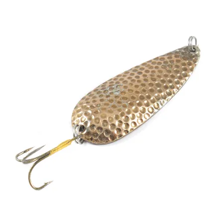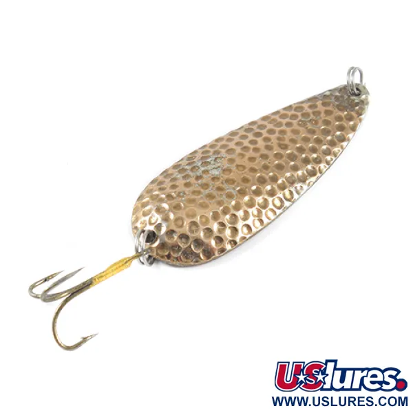 Ця класична блешня родом із Мічигану вирізняється покриттям із карбованої міді. При довжині 7 см (2 3/4 дюйма) та вазі 21 г (3/4 унції) ця блешня Eppinger Dardevle Dardevlet (код товару 1773) демонструє майстерність виконання, притаманну виробам компанії з Дірборна. Фактурна, «бита» поверхня на опуклій стороні створена для того, щоб вловлювати та відбивати світло під різними кутами. У хвостовій частині закріплено трійник, вушко якого оздоблене обмоткою жовтою ниткою у вінтажному стилі. Даний екземпляр зберігся у стані 4/5; чиста поверхня підкреслює унікальну довгасту форму, викарбувану за допомогою фірмових штампів Eppinger. Заводні кільця встановлені як на вушку для жилки, так і на кріпленні гачка, що свідчить про надійність конструкції, завдяки якій ці американські приманки стали класикою ще відтоді, як Лу Еппінгер розпочав виробництво у 1906 році.