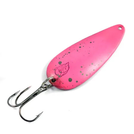 Вагою 21 г (3/4 унції), ця блешня Eppinger Dardevle Dardevlet є справжньою частиною американської рибальської історії, що бере свій початок у майстернях Лу Еппінгера в Мічигані. Яскраве рожеве покриття виглядає впізнавано завдяки темним цяткам та фірмовому штампу з чорною головою диявола біля заводного кільця. Маючи довжину 7 см (2 3/4"), цей екземпляр з артикулом 2422 демонструє класичну довгасту увігнуту форму з металу, яка визначає стиль бренду ще з 1906 року. Приманка оснащена надійним трійником та заводним кільцем, що розраховані на силові закиди. Судячи із зовнішнього стану, блешня має природні сліди використання з незначними поверхневими подряпинами, що дозволяє впевнено оцінити її збереженість на 4/5. Завдяки довговічності фірмових американських штампів, за якими виготовляються ці вироби, подібні блешні Dardevle свого часу навіть включали до складу авіаційних комплектів виживання для уряду США. Для колекціонера чи рибалки цей рожевий варіант забезпечує чудову помітність за будь-якої прозорості води; приманка розрахована насамперед на рівномірну повільну проводку для спокушання хижої риби.
