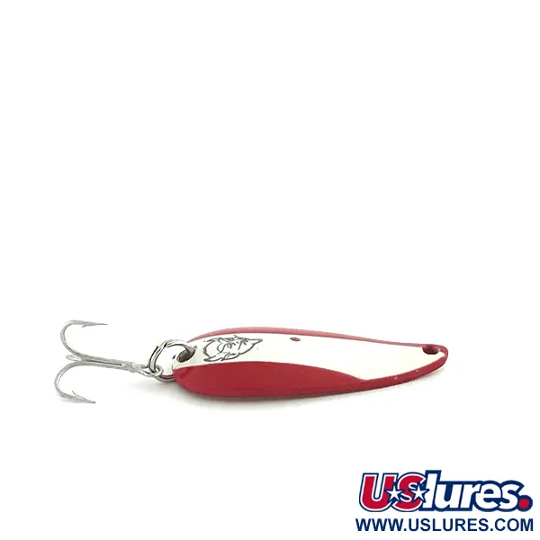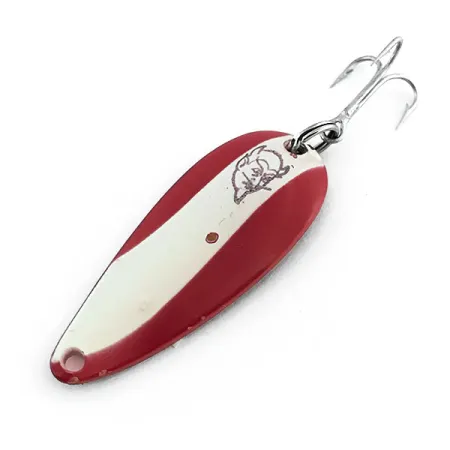 Полірована мідь на зворотному боці дозволяє миттєво впізнати в цій Dardevle Midget універсальну класику від Eppinger. При довжині 4,5 см та вазі 6 г, ця коливна блешня має легендарні червоно-білі діагональні смуги на лицьовій стороні разом із впізнаваним логотипом у вигляді голови диявола. На мідній спинці чітко викарбовано напис «DARDEVLE SPINNING U.S.A.», що підкреслює її американське походження. Цей екземпляр під артикулом 8942 знаходиться у чудовому стані (5/5), має лише ледь помітні сліди часу, зберігаючи яскравість фарби та блиск металу. Приманка оснащена чистим трійником та заводним кільцем. Такий розмір традиційно використовується для лову форелі, окуня або малоротого окуня на легку спінінгову снасть. Мідна підкладка створює м’який теплий відблиск, що ефектно контрастує з насиченими кольорами лицьової сторони.