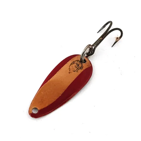 Яскраве червоне забарвлення з мідною смужкою прикрашає лицьову сторону цієї вінтажної коливної блешні. При вазі 1 г (1/32 унції) та довжині всього 2,3 см (1 дюйм), ця блешня Eppinger Dardevle Skeeter є класичним зразком приманок для ультралайтового лову. Відомий логотип у формі голови диявола чітко викарбуваний на центральній мідній смузі — це фірмовий знак бренду, історія якого почалася в Детройті з Лу Еппінгера у 1906 році. На зворотному боці приманки, на чистій мідній поверхні, вибито маркування «DARDEVLE SKEETER U.S.A.». Цей екземпляр (артикул 13737) оснащений міцним заводним кільцем та гострим трійником. Стан блешні ідеальний (5/5), з насиченим кольором емалі та чистою металевою поверхнею. Продовгувата форма та увігнута лицьова частина забезпечують характерну гру на повільній проводці, завдяки чому ця модель давно стала фаворитом для лову форелі та окуня.