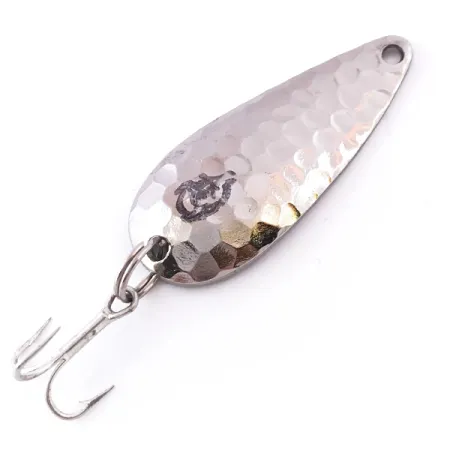 Карбоване нікелеве покриття надає цій вінтажній блешні-коливалці класичну світловідбивну текстуру. При довжині 4,5 см (1 3/4") та вазі 9 г (1/3 унції) цей примірник є яскравим прикладом спадщини компанії Eppinger. На лицьовому боці зображено культовий логотип із головою чорного чорта, а на зворотному нанесено глибоке клеймо «DARDEVLE SPINNIE DEARBORN MICH.», що вказує на виробництво в період після 1959 року, коли бренд переїхав із Детройта. Ця приманка під артикулом 3999 не була у використанні та зберігає первинний блиск усієї металевої поверхні. Вона оснащена міцним заводним кільцем та гострим трійником, розрахованими на надійне закидання при ловлі форелі або окуня. Увігнута краплеподібна форма та розподіл ваги цієї виготовленої в Мічигані блешні розраховані на досягнення дальності та точності під час закидання.