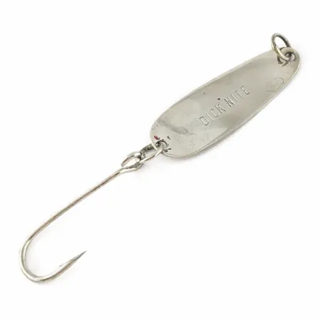 На металевій поверхні чітко вибито ім’я виробника — цей екземпляр є справжньою класикою рибальської історії Тихоокеанського Північного Заходу США. Блешня має компактний розмір 2,5 см (1") і важить усього 1 г (1/32 унції), що робить її спеціалізованим інструментом для прихильників лову на легку снасть. Виконана у чистому нікелевому покритті, ця тонкостінна конструкція є візитною карткою Dick Nite Spoons — дизайну, якому рибалки довіряють уже понад 60 років. Ця модель (артикул 24313) оснащена одинарним гачком на міцному заводному кільці — такий монтаж цінують за ефективність під час лову на течії або тролінгу форелі та кокані. У верхній частині розташоване просте дротяне вушко для кріплення жилки або з’єднання з доджером. Поверхня металу блискуча та чудово збережена, що відповідає оцінці стану 5/5. Хоча її часто використовують для лову лосося впроводку на річках, завдяки малій вазі вона так само добре підходить для підлідного лову або закидів ультралайтовою снастю.