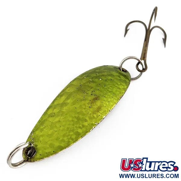 Покриття Green crystal, як на цьому 14-грамовому (1/2 унції) екземплярі, створює характерний візуальний профіль, за яким часто полюють колекціонери американських снастей. Блешня Dr. Walker's Johnny REB від виробника Johnny Walker (код товару 17987) має класичний силует «колебалки» довжиною 5,5 см (2 1/4 дюйма). Фактурна карбована поверхня приманки ефективно грає світлом під різними кутами. Оснащена міцним трійником та заводними кільцями з обох боків, ця модель спроєктована для далеких закидів та надійної роботи. Даний екземпляр зберігся у відмінному стані та заслуговує на оцінку 4/5 за збереженість оздоблення та цілісність конструкції. Ця приманка родом із США є зразком простої та водночас ефективної філософії дизайну снастей Johnny Walker середини минулого століття.