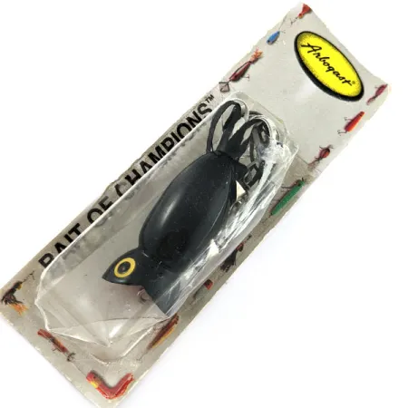 Чорний, як нічне плесо, цей екземпляр вагою 1/3 унції (10 г) є яскравим представником культової лінійки Fred Arbogast. Саме цей Fred Arbogast Hula Popper під артикулом 20518 вирізняється фірмовими жовто-чорними очима-мішенями та корпусом довжиною 2 дюйми (5 см). Приманка досі знаходиться в оригінальній упаковці Arbogast, хоча прозорий блістер та картонна основа мають певні сліди часу та деформації від тривалого зберігання. Оскільки приманку ніколи не використовували на риболовлі, вона лишається новою і зберегла оригінальну чорну гумову спідницю «hula» у тому ж вигляді, в якому вона вийшла з американського заводу. Призначена для поверхневої гри (0 м), її увігнута передня частина є класичним конструктивним рішенням для приваблення окуня та щуки. Фурнітура та фарба зберегли заводський вигляд, що робить цей екземпляр чудово збереженим зразком класичного топвотера.
