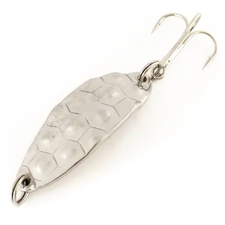 Кована нікелева поверхня цієї блешні Gibbs KOHO створює багатогранне відблискування, що забезпечує помітність приманки за різних умов прозорості води. Вага рівно 1/2 унції (14 г) та обтічний профіль довжиною 2 дюйми (5 см) розраховані на далекі закиди, які часто необхідні під час риболовлі зі скелястих берегів або річкових круч. На зворотному боці чітко відтиснене клеймо Gibbs KOHO 35 — знак якості від виробника, відомого своєю надійною фурнітурою. Цей екземпляр з артикулом 9610 перебуває в новому стані (5/5), зберігши яскравий металевий блиск без помітних подряпин чи слідів зносу. Оснащення включає міцні заводні кільця та гострий трійник зі сріблястим покриттям. Краплеподібна форма приманки спеціально розроблена для стабільної гри під час проводки, що дозволяє блешні впевнено триматися в обраному горизонті товщі води.