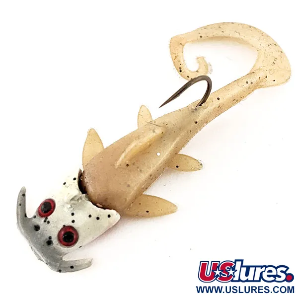 Ця приманка американського виробництва від Gitzit Incorporated вагою 1/4 унції (8 г) демонструє цікавий підхід до дизайну силікону середнього розміру. Завдяки довжині 2 3/4" (7 см) приманка має компактний профіль, що вдало імітує придонну кормову базу, та йде під артикулом 12862. Забарвлення White / Red Eyes виглядає особливо ефектно: пофарбована у білий колір голівка з чорними вкрапленнями та насичено-червоними зіницями плавно переходить у напівпрозоре бежеве тіло, насичене дрібними чорними блискітками. Анатомія виробу включає відлиті грудні та спинний плавці, що закінчуються витонченим стрічковим хвостом-твістером. Оснащення складається з одного потужного одинарного гачка, розміщеного у спинній частині. Приманка перебуває у чудовому стані (5/5): силікон залишається еластичним, а лакофарбове покриття на огруженій голівці майже не має ознак старіння.