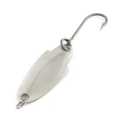 Нікелеве покриття корпусу цієї коливалки від Glen Evans зберегло винятковий блиск і відполіроване до дзеркального стану. При довжині 3 см (1 1/4") та вазі лише 1,5 г (3/64 унції), ця мікроприманка є класичним зразком американської історії рибальських снастей. Пара характерних ступінчастих виїмок біля верхнього заводного кільця створює впізнаваний силует, притаманний виробам цього виробника. Фурнітура у відмінному стані: блешня оснащена двома заводними кільцями та одинарним гачком, що гармоніює зі сріблястим кольором приманки. Завдяки стану 5/5, блешня повністю зберегла свій початковий блиск на всій вигнутій поверхні. Цей екземпляр має артикул 21783 і вважається рідкістю серед колекціонерів, які спеціалізуються на невеликих вінтажних металевих приманках.