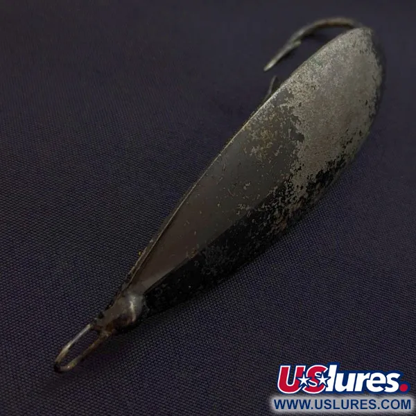 Завдяки вазі 3/4 унції (21 г) важкий профіль цієї коливальної блешні-незачіпляйки дозволяє виконувати точні закиди в густе латаття або щільний очерет. Форма «крапля» довжиною 2 3/4 дюйма (7 см) викована товстішою посередині — це конструктивне рішення призначене для того, щоб гачок залишався вертикально під час рівномірної проводки. Матове чорне покриття, що збереглося в стані 4/5, демонструє природний знос інструменту, створеного для важких умов. Одинарний фіксований гачок захищений пружинним металевим вусом, що мінімізує зачепи під час лову баса або щуки в заростях. Ця конкретна блешня з артикулом 24489 належить до епохи внутрішнього виробництва в США. Чорне покриття створює чіткий силует, що робить її надійним вибором для каламутної води, де потрібен висококонтрастний профіль.
