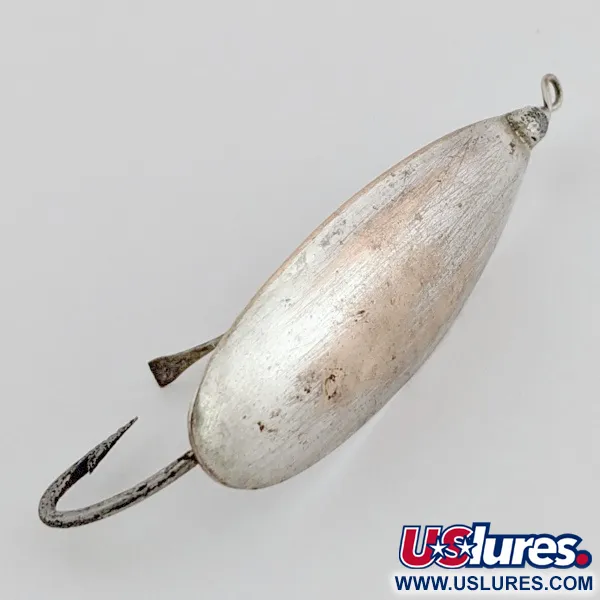 Справжнє срібне покриття надає цій блешні-колебалці довжиною 5,5 см яскравий білий відблиск, який суттєво відрізняється від сучасного хрому або полірованої сталі. Штамповане з важкого сплаву міді та цинку, тіло має потовщену центральну частину для стабільної орієнтації гачка жалом догори під час проводки. Одинарний фіксований гачок захищений міцним дротяним відбійником, що дозволяє впевнено закидати приманку безпосередньо в густу рослинність та латаття. На відміну від сучасних версій, цей екземпляр належить до старого випуску виробництва США і має класичне клеймо виробника на внутрішній поверхні. Приманка має легкі природні сліди часу, які не впливають на її відбивні властивості, стан 4/5. Вага 9 г запобігає закручуванню волосіні та забезпечує достатню масу для точних закидів у вікна серед водної рослинності. Ця вінтажна Johnson Silver Minnow Weedless внесена до каталогу під кодом 24492.
