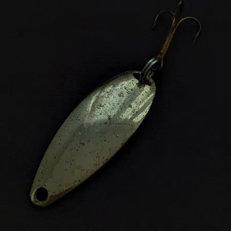 Чітке тиснення назви «JOHNSON'S SPRITE» на металі свідчить про те, що ця 5-сантиметрова (2 дюйми) блешня була справжньою класикою американських рибальських ящиків середини минулого століття. При вазі 7 г (1/4 унції) золотавий корпус має вузьку, видовжену краплеподібну форму, розраховану на ефективне закидання. Цей екземпляр під артикулом 22509 має помітні сліди використання та часу на металевій поверхні, що відповідає оцінці стану 3 з 5. Приманка вироблена в США та оснащена бронзованим трійником, закріпленим на міцному заводному кільці у хвостовій частині. Блискуче золотаве покриття забезпечує чудову помітність за різної прозорості води, а отвір для кріплення жилки в носовій частині залишається чистим і придатним для прямого монтажу.