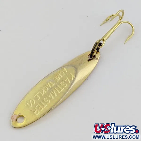 Позолочена поверхня підкреслює характерний кутастий профіль цієї блешні вагою 3,5 г (1/8 унції). При довжині 3,5 см (1 1/2") на лицьовій стороні приманки чітко видно виштампуване клеймо Acme Tackle Co. Грані з кожного боку полегшують використання блешні на глибині як пілкера або для закидання на сильних течіях. Біля вушка присутні незначні поверхневі сліди, що оголюють невеликі ділянки основного металу, що відповідає оцінці стану 4/5. Висока видимість забезпечується світловідбиваючим золотим покриттям, яке залишається яскравим на більшій частині поверхні. Артикул 24510.