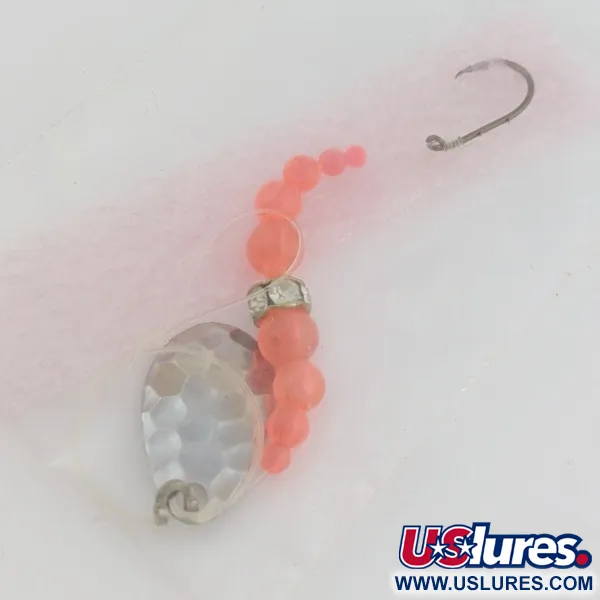 Карбоване нікелеве покриття пелюстки забезпечує максимальне відбиття світла навіть під час повільної проводки. Ця добірка снастей для лову кокані від Mack's Lure містить серію рожевих намистин різного розміру, що ведуть до фірмової вставки Wedding Ring, інкрустованої стразами. Оснастка вагою 2 г (1/16 унції) спеціально збалансована для тролінгу, де для провокації клювання потрібна делікатна подача. Прозорий повідець із мононитки дозволяє зосередити увагу на блиску пелюстки та кольорі намистин, утримуючи одинарний гачок для створення непомітного профілю. Оскільки цей товар перебуває в невикористаному стані, нікелеве покриття залишається яскравим, а рожеві намистини не втратили свій колір. Артикул 24487.