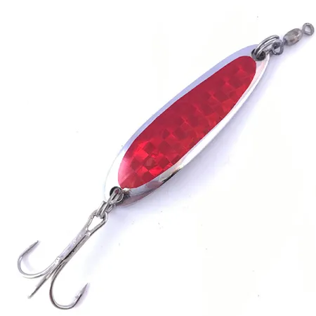 Нікельоване покриття забезпечує яскравий відблиск цій Luhr Jensen Krocodile Die #3 — блешні-коливалці, яку цінують за універсальність як у прісній, так і в солоній воді. При довжині 2 1/4 дюйма (5,5 см) та вазі 1/3 унції (10 г), ця приманка створена для далеких закидань та лову тролінгом. Ця конкретна модель (артикул 4049) доповнена червоною призматичною стрічкою з візерунком «стільники», яка створює особливу гру світла, порівняно зі звичайними фарбами. На зворотному боці чітко видно штамп «KROCODILE DIE #3 LUHR JENSEN HOOD RIVER, ORE», що вказує на її походження з виробничих потужностей бренду в Орегоні. Фурнітура складається з міцного заводного кільця та гострого трійника. Стан оцінюється на 5/5: нікельований корпус зберігає яскравий блиск, а клейова основа червоної наклейки надійно тримається по всіх краях. Вузький профіль та розподіл ваги дозволяють приманці ефективно тримати горизонт під час проведення на сильній течії або у глибоких шарах води.