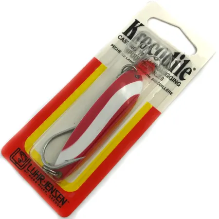 Ця блешня Luhr Jensen вагою рівно 1/2 унції (14 г) забезпечує необхідну масу для далеких закидань із пірсів або човнів. При довжині 2 1/2 дюйми (6,5 см), ця модель Krocodile Die #4 має класичне яскраве забарвлення у червоно-білу смужку. Даний екземпляр з артикулом 5453 є новим і залишається запечатаним в оригінальній упаковці 2006 року. На звороті картки відзначено походження бренду з Худ-Рівер, штат Орегон, та його історію з 1932 року. Оснащена одним великим гачком, вона розрахована на такі техніки, як ловля в закид, тролінг та джигінг. Товстостінна металева конструкція гарантує стабільну гру на проводці при сильній течії або під час полювання на агресивного хижака.