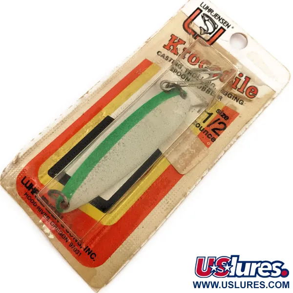 Музейний архів: Luhr Jensen Krocodile DIE #4 (світиться в темряві), білий/зелений, 14 г, блесна коливалка (колебалка) #12895