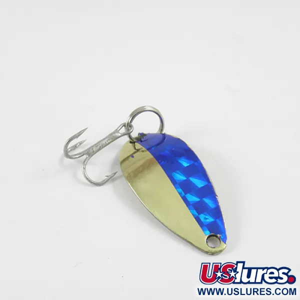 При довжині 3 см (1 1/4") ця коливна блешня Seneca вирізняється ефектним комбінованим забарвленням на опуклій стороні. Одна половина зберегла яскравий блиск золотистого напилення, тоді як інша вкрита насиченою синьою голографічною наклейкою з візерунком луски, що чудово відбиває світло. Ця конкретна модель (артикул 2972) належить до оригінального періоду Seneca, ще до того, як бренд перейшов у власність компанії Acme. На зворотному боці приманки викарбувана впізнавана назва «LITTLE CLEO» з чіткими лініями та виразним шрифтом. Завдяки вазі 3,5 г (1/8 унції) ця «коливалка» ідеально підходить для точного закидання легкою снастю. Оснащення складається з міцного заводного кільця та гострого блискучого трійника. Стан приманки оцінюється як 5/5: покриття залишилося бездоганно чистим як на позолоченій частині, так і на синій голограмі.