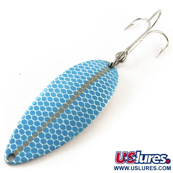 Завдяки вазі 3/4 унції (21 г) ця коливалка Seneca впевнено поводиться під час далеких закидів. Покриття Blue / Nickel має чіткий візерунок «стільники» на лицьовій стороні, тоді як на полірованому звороті нанесено легендарний штамп із танцівницею «Hula Girl». Саме це графічне зображення відрізняє оригінальну продукцію компанії Seneca Lure від пізніших версій Acme, випущених після поглинання бренду на початку 1980-х років. Багато досвідчених рибалок вважають, що наявність танцівниці на цій Little Cleo (Hula Girl) є важливою частиною її спадщини. Приманка з артикулом 13240 має довжину 2 1/2" (6,5 см) і збереглася у відмінному стані 5/5. На зворотному боці чітко вказано вагу та назву Seneca, що підкреслює її походження зі США. Вона оснащена надійним заводним кільцем та гострим трійником, що свідчить про високу якість виготовлення вінтажних американських снастей.