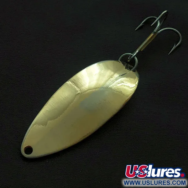 Уся поверхня цієї 5,5-сантиметрової (2 1/4") блешні вкрита золоченням, що підкреслює детальне штампування, яке так цінують досвідчені колекціонери. На зворотному боці чітко видно силует танцівниці «Hula Girl», що підтверджує оригінальність виробу Seneca Lure, виготовленого ще до того, як бренд перейшов у власність Acme на початку 1980-х років. Чимало досвідчених рибалок шукають саме цю версію, вважаючи, що гравірування фігурки є ключовим елементом успішності цієї моделі. Приманка вагою 14 г (1/2 унції) з артикулом 21076 оснащена міцним заводним кільцем, що з'єднує її з трійником оригінального зразка. Фурнітура чиста, а покриття збереглося у відмінному вигляді, що відповідає бездоганному стану 5/5. Глибоко викарбувані написи «Little Cleo» та «Wiggle» обрамляють легендарний силует танцівниці на увігнутій поверхні блешні.