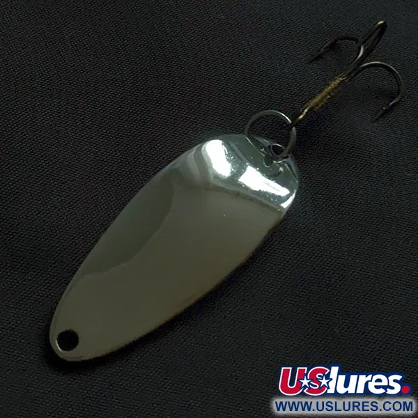 Нікелеве покриття повністю вкриває цю блешню довжиною 4,5 см (1 3/4"), що відповідає класичному оздобленню, якому Seneca віддавали перевагу в період свого розквіту. На зворотному боці нанесено фірмове штампування із зображенням дівчини Hula Girl — характерну ознаку приманок оригінальної компанії Seneca Lure до того, як на початку 1980-х бренд перейшов у власність Acme. Колекціонери часто шукають саме цю деталь із танцівницею, оскільки в сучасних версіях Little Cleo від такого складного відтиску відмовилися. При вазі 10 г (1/3 унції) приманка оснащена бронзованим трійником, закріпленим на міцному заводному кільці. Даний екземпляр під кодом 22822 має стан 5/5, виглядає невикористаним і демонструє якість американських снастей минулих десятиліть. Вузький профіль та характерний вигин розраховані на закидання в різних умовах лову. У верхній частині блешні, навпроти гачка, розташований отвір для застібки або прямого прив'язування волосіні.
