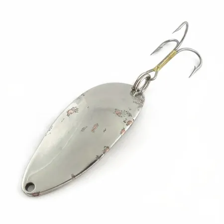 Випукла сторона цієї класичної блешні-коливалки вагою 14 г (1/2 унції) вкрита полірованим нікелем, крізь який проглядає мідна основа. Маючи довжину 5,5 см (2 1/4 дюйма), цей екземпляр є оригінальним виробом американської компанії Seneca Lure, виготовленим ще до того, як на початку 1980-х права на дизайн перейшли до компанії Acme. Особливу цінність цій приманці надає культове зображення танцівниці «Hula Girl», виштампуване на звороті — деталь, що зникла у пізніших серійних версіях. Чимало рибалок зі стажем переконані, що саме наявність цієї танцівниці є секретним інгредієнтом легендарного статусу цієї блешні в арсеналі приманок. Оснащення включає міцне заводне кільце та трійник з обмоткою цівки латунного кольору. З огляду на стан 3/5, на металі помітні сліди використання та вікова патина, проте цілісність конструкції не порушена, тож приманка підходить як для колекції, так і для закидів. У вузькій носовій частині блешні передбачено один отвір для кріплення волосіні.