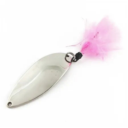 Ця класична блешня виробництва Seneca вагою 21 г (3/4 унції) є чудовим зразком оригінального дизайну Little Cleo, випущеного ще до переходу бренду до Acme на початку 1980-х. Нікельований корпус довжиною 6,5 см (2 1/2") має на звороті легендарний штамп із силуетом танцівниці «Hula Girl». Екземпляр з артикулом 24270 оцінюється на 5/5: поверхня чиста та блискуча, а фурнітура в ідеальному стані. На задньому заводному кільці закріплена мушка з яскраво-рожевого пір’я, що створює м’який текстурний контраст із металевим тілом приманки. Ця модель відображає епоху, коли Seneca випускала блешні зі штампом танцівниці — деталлю, яку багато рибалок вважають важливою особливістю цієї класики для важкого кастингу. У носовій частині є один чітко пробитий отвір для надійного кріплення повідця або застібки.
