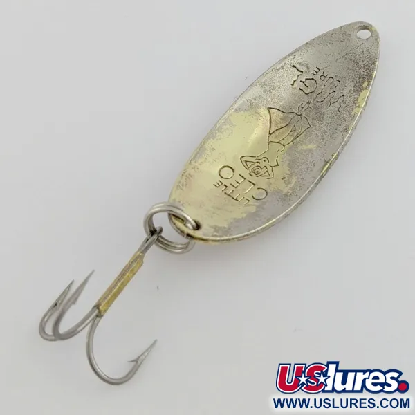 Штампування культової фігури «Hula Girl» на зворотній стороні дозволяє миттєво ідентифікувати цю коливальну блешню вагою 1/2 унції (14 г) як класичну Little Cleo оригінальної епохи Seneca. Довжиною 5,5 см (2 1/4"), цей екземпляр має двоколірне нікелево-латунне покриття, що відображає справжній характер бувалої приманки, оцінений на 3/5. До того, як на початку 1980-х компанія була викуплена Acme Tackle, нью-йоркська Seneca Tackle Company виробляла ці блешні з детальним гравіюванням танцівниці — додаток, натхненний екзотичною танцівницею, яку автор пісень К.В. «Чарлі» Кларк побачив у 1930-х роках. Багато досвідчених рибалок досі впевнені, що логотип танцівниці є талісманом на удачу при лові форелі та лосося на Великих озерах. Ця конкретна приманка з артикулом 24443 оснащена класичною товстостінною фурнітурою та трійником, закріпленим міцним заводним кільцем. Латунна основа проступає крізь нікелеве напилення на опуклій стороні, створюючи виразний візуальний контраст, що відрізняє її від сучасних перевидань.