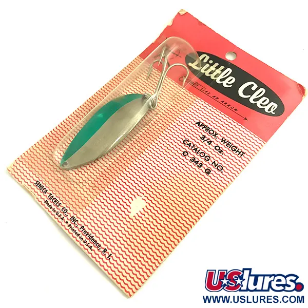 Вага у 21 г (3/4 унції) забезпечує цій вінтажній коливній блешні компактність, необхідну для досягнення потрібної глибини під час проводки. Металевий корпус завдовжки 6,5 см (2 1/2 дюйма) має ефектне нікель-зелене покриття та маркується артикулом 5800. Колекціонери впізнають у цій моделі оригінальний виріб епохи Seneca Tackle Co. з Провіденса (штат Род-Айленд), виготовлений ще до того, як бренд перейшов у власність компанії Acme на початку 1980-х років. Головною особливістю для багатьох рибалок є культове зображення танцівниці «Hula Girl», викарбуване на зворотному боці — деталь, яку згодом прибрали у сучасному виробництві. Цей екземпляр не був у використанні та досі зберігається у рідній червоно-білій картонній упаковці з хвилястим візерунком зразка 1960-х років, що має характерні для свого віку сліди тривалого зберігання.