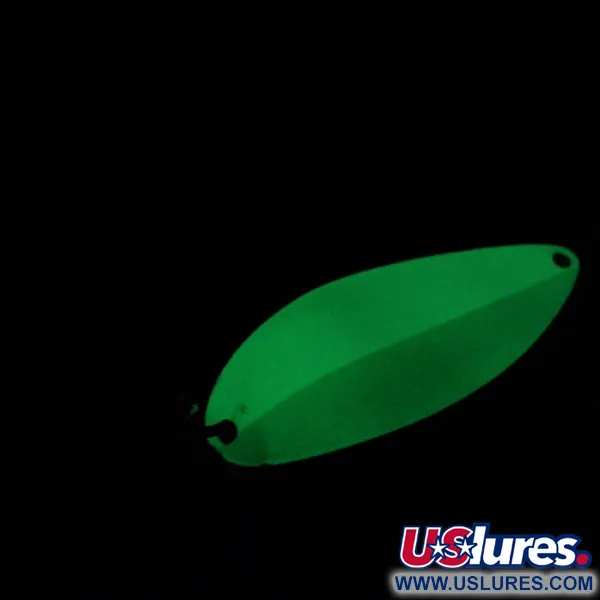 Вагою 1/4 унції (7,5 г), ця модель має класичне біло-зелене світлонакопичувальне покриття, розроблене для кращої помітності в каламутній або глибокій воді. Колекціонери часто шукають ці ранні моделі компанії Seneca Lure, особливо через силует танцівниці хула, викарбуваний на звороті блешні. Ця приманка довжиною 2 1/4 дюйма (6 см) представляє оригінальний стиль виробництва США ще до того, як на початку 1980-х компанію поглинула Acme, після чого емблему з танцівницею з часом перестали використовувати. Лицьова сторона приманки має акуратне двоколірне світлонакопичувальне покриття, тоді як зворотний бік зберігає яскравий фініш, на якому чітко видно культовий силует Hula Girl. Стан оцінено на 5/5, фурнітура залишається функціональною: одинарний сріблястий гачок та міцне заводне кільце. Модель з артикулом 0375 є чудовим прикладом популярної блешні для тролінгу та лову в закид, успіх якої досвідчені рибалки пов’язують саме зі знаменитою танцівницею на звороті.