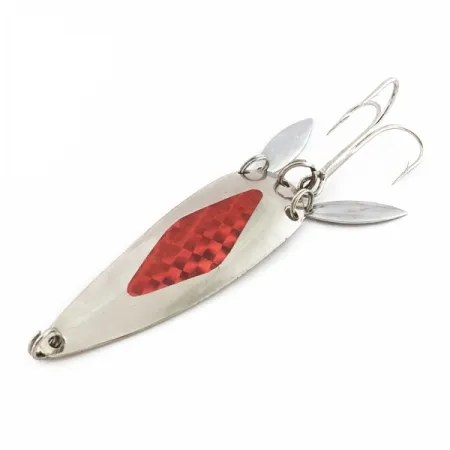 Дві невеликі сріблясті пелюстки розміщені за хромованим корпусом, що створює додаткові відблиски та візуальний рух безпосередньо в зоні атаки. Світловідбивна поверхня має текстуровану червону вставку «алмазна луска», розташовану по центру опуклої сторони для високої контрастності під водою. При довжині 3" (7,5 см) і вазі 3/5 унції (17 г) розподіл ваги добре підходить для далеких закидань або рівномірного тролінгу. Ця модель вироблялася компанією Marathon Bait Company між 1929 та 1979 роками, поєднуючи профіль блешні-ложки з додатковими вібраціями від вторинних пелюсток. Даний екземпляр має стан 5/5, світловідбивне покриття та червона наклейка-луска залишилися чистими та неушкодженими. Код товару 24602.