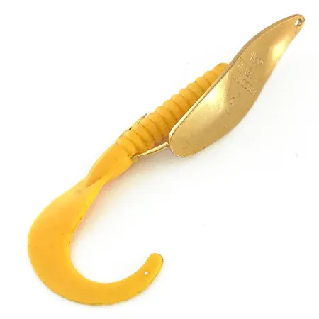 Цей екземпляр з чітким тавруванням бренду на яскравому золотистому тілі демонструє особливу форму-незачіпляйку, характерну для серії Mepps. При довжині 5 см (2") та вазі 8 г (1/4 унції) Timber Doodle у розмірі 0 створений для точного закидання у густу рослинність, де зазвичай ховається хижак. Блешня оснащена підсадкою у вигляді жовтого твістера Mister Twister, який ефективно прикриває жало гачка, дозволяючи проводити приманку крізь латаття та коряжник без зачепів. Цей конкретний екземпляр з артикулом 9359 виготовлений у США; металеві та силіконові елементи зберегли чудовий вигляд, що відповідає оцінці стану 5/5. Еластичний твістер з роздвоєним хвостом щільно сидить на вмонтованому гачку, конструкція якого забезпечує правильну орієнтацію приманки під час проводки. Колекціонери оцінять чітке маркування на опуклому боці золотої пелюстки, що підтверджує автентичність цього вінтажного виробу.