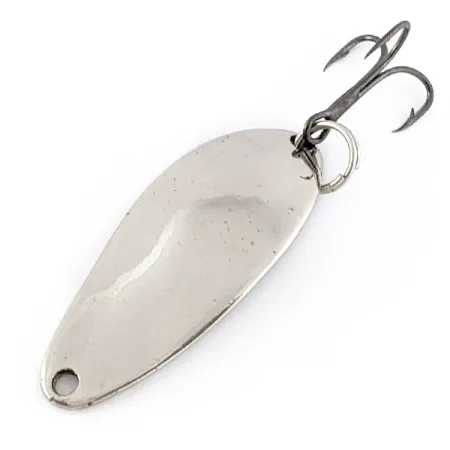 На зворотному боці цієї 4-сантиметрової блешні на дзеркально відполірованому нікелевому покритті чітко вибите оригінальне клеймо, що ідентифікує її як Little Cleo Wigl-Lure. Цей примірник періоду виробництва Seneca важить 7 г і має класичну «горбату» форму, розраховану на далекий закид. На корпусі краплеподібної форми нанесене маркування «A Seneca Lure» та «USA», що вказує на його виготовлення в середині минулого століття. Стан виробу оцінено на 5/5, оскільки покриття надзвичайно чисте, а оригінальний трійник із темним покриттям залишається гострим і надійно тримається на заводному кільці. Ця блешня, представлена під артикулом 22625, є чудово збереженим зразком історії американських рибальських снастей. Отвір у носовій частині точно висвердлений для кріплення волосіні, а велика товщина металу дозволяє приманці ефективно заглиблюватися під час закидання або тролінгу.