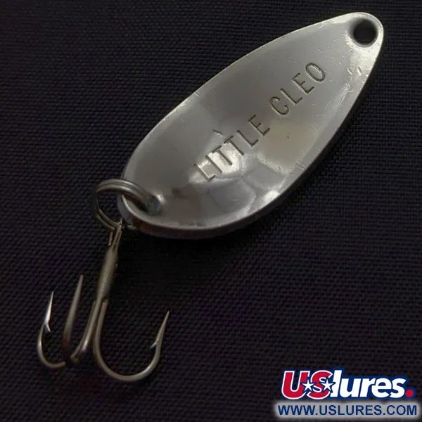 Виразний візерунок синьої луски поверх нікельованого покриття визначає візуальну привабливість цієї коливальної блешні. Маючи довжину 1 1/4" (3 см) та вагу 3/16 унції (5 г), цей екземпляр представляє оригінальну епоху виробництва Seneca Lure Company до того, як бренд був придбаний компанією Acme на початку 1980-х років. На зворотному боці блешні нанесено класичне штампування «LITTLE CLEO», глибоко втиснуте в метал. Вертикальна золотиста смуга проходить по центру луски, створюючи чіткий контраст із прохолодними синіми відтінками. Цей конкретний виріб залишається у невикористаному стані, демонструючи чисті поверхні та чіткі лінії фарбування, характерні для добре збереженої вінтажної знахідки. Як предмет з рейтингом 6/5, він має артикул 24457. Краплеподібна форма є характерним елементом дизайну з каталогу Seneca, призначеним для універсального використання під час закидання.
