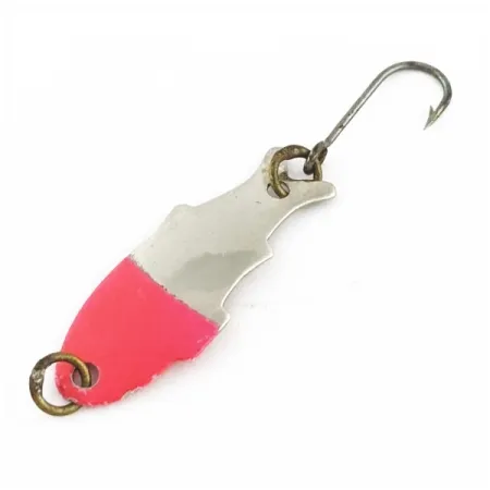Ця ультралегка коливалка має довжину всього 3 см (1 1/4") і відрізняється впізнаваним профілем у формі рибки, що є візитівкою бренду Shoff's. Металеве тіло розділене на верхню частину з полірованого нікелю та яскраво-червону нижню — така контрастна комбінація забезпечує чудову видимість у різних умовах на воді. При вазі лише 1 г (1/32 унції), ця приманка є ідеальним фінесним інструментом для любителів ловлі форелі чи окуня на тонкі жилки. Екземпляр з артикулом 24218 перебуває у стані 5/5, фарбування та гальванічне покриття виглядають бездоганно. Одинарний гачок кріпиться за допомогою латунного заводного кільця, аналогічне кільце встановлене в носовій частині для прив'язування снасті.