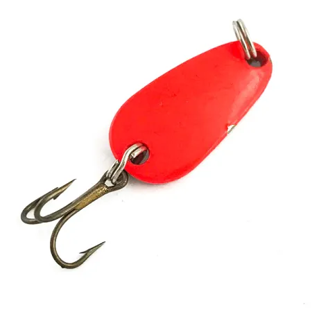 Яскраве флуоресцентне покриття вкриває 1-дюймовий (2,5 см) корпус цієї приманки Sølvkroken, роблячи її надзвичайно помітною в умовах слабкого освітлення. При вазі рівно 1/8 унції (4 г) блешня має колірну схему «Red UV / Silver», яка інтенсивно реагує на ультрафіолетове випромінювання, перетворюючи видимий червоний на яскраве люмінесцентне сяйво. Ця модель, що представлена під кодом 6264, має оцінку стану 5/5, демонструючи ідеально чисту поверхню без жодних дефектів. Трійник із бронзовим покриттям надійно закріплений за допомогою міцного заводного кільця, що відповідає якості, притаманній норвезькому виробництву снастей. Оскільки УФ-реактивні властивості закладені безпосередньо в пігмент, приманка зберігає свою помітність навіть у каламутній воді.