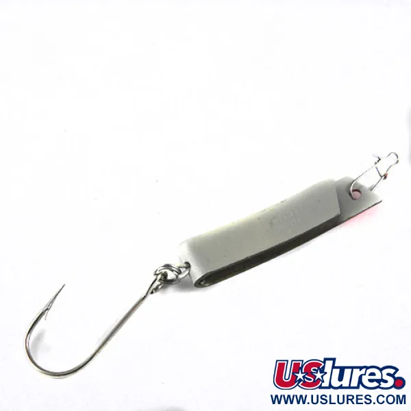 При довжині 4,5 см (1 3/4 дюйма), унікальне U-подібне тіло цієї приманки South Bend Super-Duper 506 є чудовим прикладом продуманої американської конструкції з гнутого металу. Забарвлення складається з суцільного білого тіла з яскравим червоним акцентом у верхній частині, де розташована надійна дротяна застібка для швидкого кріплення до волосіні. На протилежному кінці за допомогою міцного заводного кільця закріплено великий одинарний гачок з довгою цівкою. Цей екземпляр з артикулом 0539 та вагою 7 г (1/4 унції) є добре збереженою частиною американської рибальської історії. Приманка перебуває в ідеальному стані (5/5), а її лакофарбове покриття та металеві елементи виглядають так само, як у день виходу з заводу.