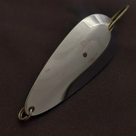 Блискуче нікелювання покриває всю поверхню цієї важкої вагальної блешні, оснащеної інтегрованим дротяним відбійником, розробленим для проходження крізь лілії та очерет. Завдяки вазі 3/4 унції (21 г) щільний металевий корпус забезпечує стабільні та дальні закиди у конкретні вікна серед водної рослинності. Штамп виробника на внутрішньому вигині ідентифікує цей виріб як творіння Tony Accetta — спеціалізоване спорядження для складних умов лову. Зразок під кодом 24618 знаходиться у стані 5/5, зберігши свій первісний дзеркальний блиск і гладке покриття. Одинарний гачок жорстко зафіксований на тілі блешні та посилений структурним натягом відбійника. Висококонтрастні відблиски нікелевого покриття забезпечують чудову видимість у каламутній воді або за хмарної погоди.