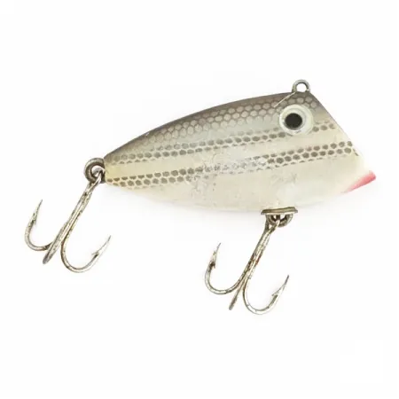 Луска окуня (Barfish) на цьому Bayou Boogie виконана в кольорі металік-срібло з тонкими горизонтальними смугами, що імітують дрібну кормову базу. При довжині 2 дюйми (5 см) і вазі 1/3 унції (10 г), тонучий корпус має класичний для Whopper Stopper похилий лоб. Оцінка стану 5/5 свідчить про ідеальне збереження фарби та фурнітури цього конкретного екземпляра під кодом товару 24588. Пофарбований у червоний колір рот створює різкий контраст зі світлим черевцем і сріблястими боками. Кріплення для жилки розташоване на верхівці голови, спеціально для технік «ступінчастої» проводки, характерних для цієї безлопатевої моделі. Два трійники розташовані на черевці та хвості для балансування компактного профілю.